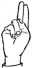 На ћирилици написано ПУРЕШ ВЕЛИЧКОВИЋ састоји се из 15 слова [?]. Исписано ћириличном једноручном азбуком за глувонеме: